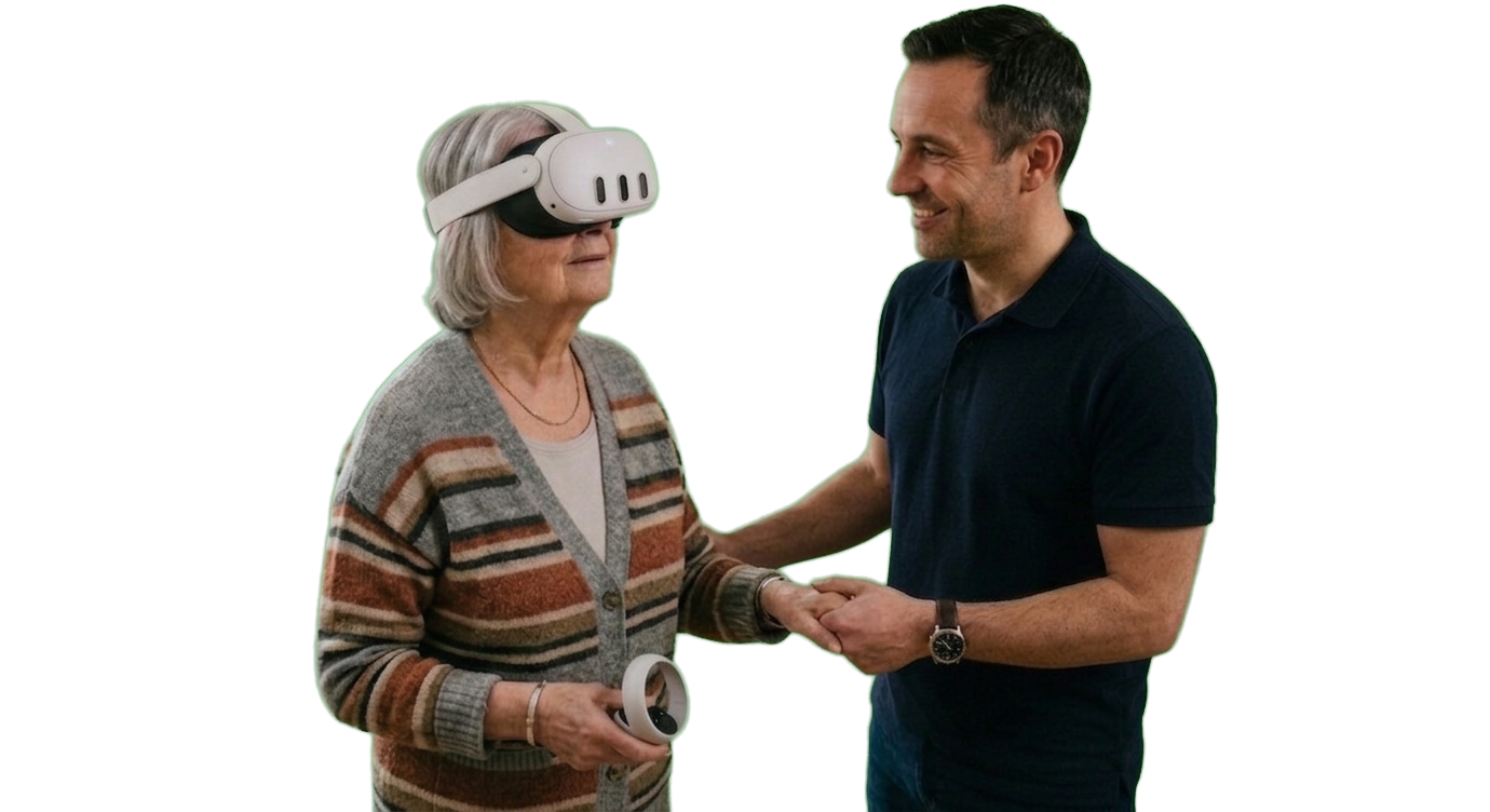 Vive+ es una plataforma de realidad virtual diseñada para centros y profesionales que buscan ofrecer experiencias inmersivas de bienestar, cultura y relajación sin necesidad de usar gafas de forma individual.